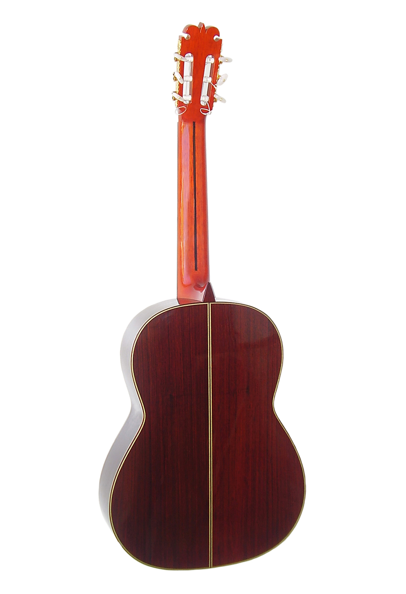 Flamenco guitar with a German spruce top, Rio rosewood back and sides, Cameroonian ebony fingerboard, and a reinforced Honduran cedar neck.